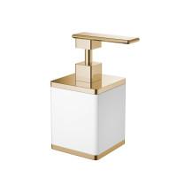 Boheme Add 10969-W-G — настольный дозатор для мыла белого цвета. Основание выполнено из латуни с матовым покрытием, что обеспечивает устойчивость к коррозии и прочность конструкции. Габариты изделия: высота 8,3 см, ширина 11,8 см, глубина 17,1 см. Современный дизайн органично впишется в интерьер ванной комнаты. Обеспечена легкость наполнения и надежная подача мыла. Страна производства — Турция. Гарантия производителя — 1 год.