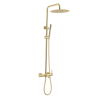 Душевая система Boheme Uno 468-G оснащена верхним душем диаметром 30 см и изливом. Монтаж настенный, корпус из латуни с глянцевым золотым покрытием. Встроен смеситель. Комплект предназначен для душа, выполнен в современном стиле, ширина конструкции 26,6 см, высота 142 см, глубина 56 см. Страна производства — Турция. Гарантия 5 лет.