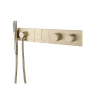 Термостатическая душевая система Boheme ZODIAC 133-SYS-MG выполнена из латуни с матовым золотым покрытием. Предусмотрен скрытый монтаж — после установки элемент не виден. Комплект оснащён ручной лейкой, термостатом для поддержания стабильной температуры воды, гарантия — 5 лет. Современный дизайн и надёжные материалы.