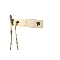 Душевая система Boheme ZODIAC 132-SYS-G предназначена для монтажа в стену с последующим скрытием ее частей. Корпус выполнен из прочной латуни с глянцевым покрытием цвета Gold. В комплекте предусмотрена ручная лейка. Компактные габариты: высота — 9 см, ширина — 5 см, глубина — 55 см. Подходит для современных ванных комнат.