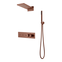 Душевая система Boheme Fusion 131-BRB предназначена для скрытого монтажа. В комплекте присутствует встраиваемая часть, элементы управления и распределения после монтажа закрыты декоративными накладками. Изготовлена из латуни с матовым покрытием цвета Brushed Bronze. Оборудована термостатом для поддержания стабильной температуры. Комплектация включает верхний душ и ручную лейку. Современный стиль, гарантия 5 лет.