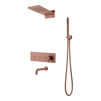 Душевая система Boheme Fusion 130-2-CB выполнена из латуни с матовым медным покрытием (Copper Brushed). Комплект включает встраиваемую часть, что обеспечивает скрытый после монтажа элемент. Система оснащена верхним душем, ручной лейкой и изливом. Предусмотрен скрытый монтаж в стену.
