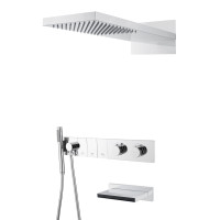 Boheme ZODIAC 133-2-CR — душевая система для скрытого монтажа, включающая термостат, излив, верхний душ и ручную лейку. Основной материал — латунь с глянцевым хромированием, что обеспечивает стойкость к коррозии. В комплект входит встраиваемая часть, которая полностью скрыта после установки в стену. Термостатический элемент поддерживает стабильную температуру воды. Монтаж скрытый, подходит для современных ванных комнат.