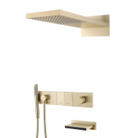 Душевая система Boheme ZODIAC 132-2-G предназначена для скрытого монтажа. Комплект включает латунную встраиваемую часть, верхний душ, ручную лейку и излив. Покрытие глянцевое, цвет Gold. Соединения выполнены из латуни, гарантия 5 лет. Современный стиль, монтаж скрытый, страна производства — Турция.