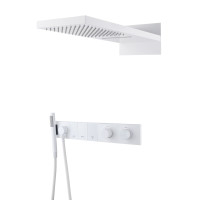 Душевая система Boheme ZODIAC 133-MW предназначена для скрытого монтажа. Корпус выполнен из латуни с матовым белым покрытием. Комплект включает встраиваемую часть, верхний душ, ручную лейку и термостатический смеситель. Основные характеристики:
