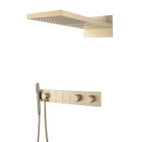 Термостатическая душевая система Boheme ZODIAC 133-MG, предназначенная для скрытого монтажа. Включает верхний душ, ручную лейку, латунную матовую фурнитуру цвета Matt Gold. В комплекте присутствует встраиваемая часть, весь механизм остается скрыт после монтажа. Современный стиль, надёжная латунная конструкция. Гарантия 5 лет.