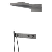 Душевая система Boheme ZODIAC 133-GM предназначена для скрытого монтажа. В комплекте латунные элементы с глянцевым графитовым покрытием, встраиваемая часть, термостатический смеситель, верхний душ и ручная лейка. Подходит для современных интерьеров, страна-производитель — Турция.