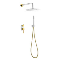 Душевая система Boheme Uno 464-WG отличается современным дизайном и глянцевым золотым покрытием. В комплекте предусмотрен верхний душ диаметром 30 см и ручная лейка. Скрытый монтаж обеспечивает эстетичное размещение всех технических компонентов, которые остаются невидимыми после установки.