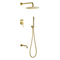 Душевая система Boheme Uno 464-2-G выполнена из латуни с глянцевым золотым покрытием. Предусмотрен скрытый монтаж: видимыми остаются только функциональные элементы, основная часть системы скрыта после установки. Оснащена верхним душем размером 30 см, ручной лейкой и изливом для наполнения ванны. Современный стиль, монтаж в стену, подключение через встраиваемую часть (входит в комплект).