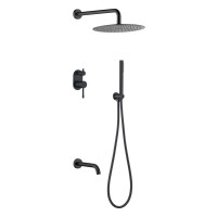 Душевая система скрытого монтажа Boheme Uno 464-2-B оснащена верхним душем диаметром 30 см, ручной лейкой и изливом. Все элементы выполнены из латуни с глянцевым чёрным покрытием. Система поставляется с встраиваемой частью, которая остаётся скрытой после монтажа в стену. Современный стиль оформления. Гарантия — 5 лет.