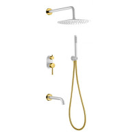 Душевая система Boheme Uno 464-2-WG White выполнена для скрытого монтажа. Предусмотрены верхний душ с диаметром 30 см, ручная лейка и излив. Встраиваемая часть полностью скрыта после установки. Латунные элементы с матовым белым покрытием. Комплект подходит для современных ванных комнат.
