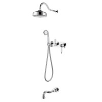 Душевая система Boheme Tradizionale 268 подходит для скрытого монтажа. Комплект включает встраиваемую часть, после установки элементы не видны. Корпус выполнен из латуни с глянцевым хромированным покрытием. В системе присутствует верхний душ и ручная лейка. Стиль – классический, цвет – хром. Гарантия – 5 лет. Производство Турция.