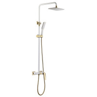 Душевая система Boheme Venturo 388-W монтируется на стену, выполнена из латуни с глянцевым белым покрытием и золотыми элементами управления. Включает встраиваемую часть, которая полностью скрыта после монтажа и обеспечивает эстетичный внешний вид. Комплект оснащён верхним душем размером 25x19 см и ручной лейкой. Размеры: высота 136 см, ширина 21 см, глубина 16.1 см. Подходит для душевых зон современной ванной комнаты. Производитель — Турция, гарантия 5 лет.