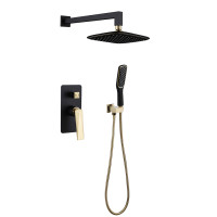 Душевая система Boheme Venturo 384-B выполнена из латуни с глянцевым черным покрытием. Монтаж скрытый — после установки все элементы, кроме функциональных, находятся вне поля зрения. В комплекте идёт встраиваемая часть. Верхний душ размером 25×19 см и ручная лейка обеспечивают комфортное водораздачу. Подходит для современных интерьеров ванн, гарантия — 5 лет.