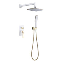 Boheme Venturo 384-W — душевая система скрытого монтажа с верхним душем 25х19 см и ручной лейкой. Корпус из латуни с матовым белым покрытием обеспечивает защиту от коррозии. Встроенная часть скрыта после монтажа, что позволяет обеспечить эстетичное решение для современных ванных комнат. Монтаж скрытый, комплект включает все необходимые элементы для подключения. Гарантия — 5 лет.