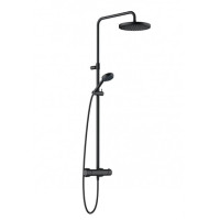 Душевая система Kludi LOGO 6808239-00 предназначена для настенного монтажа. Выполнена в современном стиле с матовым черным покрытием (Matt Black, Nero Opaco). Комплект оснащён термостатическим смесителем для стабильной температуры воды. Верхний круглый душ диаметром 24,5 см и ручная лейка с тремя режимами обеспечивают комфорт и равномерное распределение воды.