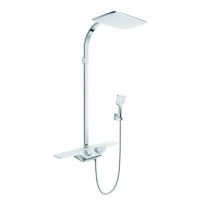 Kludi COCKPIT Discovery 8020091-00 — душевая система с термостатом для настенного монтажа. Оснащена прямоугольным верхним душем 40×26 см и ручной лейкой, оба элемента имеют по одному режиму струи. Корпус выполнен в цветах хром и белый. Длина штанги — 111.5 см. Современный внешний вид, надёжная сборка (Германия), гарантия — 5 лет. Комплект включает смеситель и термостатический элемент для поддержания температуры воды.