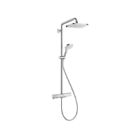 Термостатическая душевая система Hansgrohe Croma E 27630000 выполнена из нержавеющей стали с покрытием хром. Монтаж настенный. В состав входят смеситель с термостатом, верхний душ прямоугольной формы (28×17 см), ручная лейка с 3 режимами, душевая штанга длиной 117,7 см. Верхний душ и лейка обеспечивают стабильное распределение потока воды. Гарантия – 2 года.