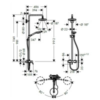 Hansgrohe Croma Select S 27255400 — душевая система с настенным монтажом. Верхний душ — круглый, диаметр 180 мм, ручная лейка с тремя режимами. Штанга длиной 98,1 см. В комплекте смеситель. Исполнение: хром/белый. Предназначена для душа. Гарантия 2 года. Производство — Германия.