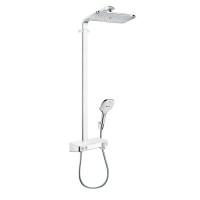 Душевая система Hansgrohe Raindance Select E 27288400 выполнена в цвете хром/белый, предназначена для настенного монтажа. Комплект включает термостат с плавной регулировкой температуры, верхний квадратный душ 36×19 см и ручную лейку с тремя режимами струи. Размер штанги — 110 см. Изготовлено в Германии, современный стиль, гарантия 2 года.