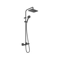Душевая система Hansgrohe Vernis 26097670 — комплект со встроенным термостатом и смесителем для настенного монтажа. Включает верхний прямоугольный душ 23×17 см, ручную лейку с двумя режимами и штангу 112,4 см. Система имеет матовое чёрное покрытие Matt Black (Nero Opaco), относится к современной коллекции Vernis и оснащена всеми необходимыми элементами для организации комфортного душа. Страна изготовления — Германия, гарантия 5 лет.