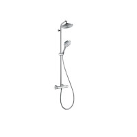 Hansgrohe Raindance Select S 27116000 — душевая система настенного монтажа из нержавеющей стали. Комплект оснащён термостатическим смесителем, круглым верхним душем диаметром 24 см, ручной лейкой с тремя режимами, штангой 121,2 см. Рассчитана для эксплуатации в современных интерьерах. Для подключения требуется стандартная подводка воды.