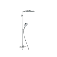 Термостатическая душевая система Hansgrohe Raindance Select S 27129000 изготовлена из нержавеющей стали с покрытием под хром. Настенный монтаж, современный дизайн. Верхний душ диаметром 24 см, круглая форма. Оснащена термостатом, встроенным смесителем, ручной лейкой с тремя режимами. Длина штанги — 107,5 см. Производство — Германия. Количество режимов верхнего душа — 2. Гарантия — 2 года.