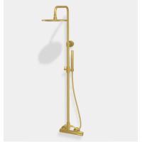 Душевая система Fima Carlo Frattini Shower column F3035T/2GOS — современное настенное решение для душа с матовым золотым покрытием. В комплекте смеситель, круглый верхний душ диаметром 25 см, ручная лейка, штанга длиной 136.3 см.