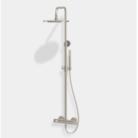 Душевая система Fima Carlo Frattini F4285T/R256GSN предназначена для монтажа на стену. Корпус изготовлен из высококачественных материалов с матовым покрытием Brushed Nickel. В комплекте термостатический смеситель, круглый верхний душ 25 см и ручная лейка. Высота штанги 128,8 см. Современная конструкция обеспечивает долговечность и точное поддержание температуры.