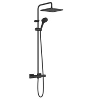 Термостатическая душевая система Hansgrohe Vernis Shape 26427670 предназначена для настенного монтажа. Изделие оснащено квадратным верхним душем 24×24 см и ручной лейкой с двумя режимами. Цвет — матовый черный (Nero Opaco), стиль — современный. Штанга длиной 112,4 см обеспечивает удобную установку. Включает термостат, смеситель и все необходимые элементы для стандартного подключения.