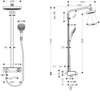 Душевая система Hansgrohe Raindance Select E 27283000 — настенное исполнение с хромированной поверхностью. Термостат для точного поддержания температуры. Верхний квадратный душ 300 мм, ручная лейка с тремя режимами, длина штанги 110 см. В комплекте смеситель, рассчитана на постоянное использование, качество подтверждено немецким производством.