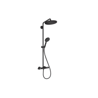 Hansgrohe Croma Select S 26890670 – душевая система с настенным монтажом, включающая термостат, верхний душ диаметром 280 мм и ручную лейку с тремя режимами подачи воды. Корпус выполнен в современном стиле с матовым черным покрытием Nero Opaco. Высота штанги составляет 103,8 см. Система изготовлена в Германии и комплектуется двухлетней гарантией.