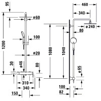 Duravit C.1 C14280007010 – настенная душевая система из нержавеющей стали. В комплекте: верхний душ Ø24 см, ручная лейка с одним режимом, излив длиной 35 см, смеситель. Штанга 120 см, форма элементов – круглая, современный стиль. Подходит для душевых зон и ванн. Легкая установка, хромированное покрытие.