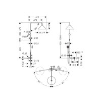 Настенная душевая система Axor 26020990 из коллекции Axor Showerpipe Front выполнена в современном стиле с износостойким покрытием Gold (Polished Gold). В комплекте термостатический смеситель, верхний конусообразный душ диаметром 27,9 см и ручная лейка с одним режимом. Высота штанги составляет 128 см. Система рассчитана для комфортного приема душа, оснащена двумя режимами переключения.