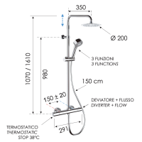 Погрузитесь в атмосферу итальянского дизайна с душевой системой Remer Rubinetterie Elegance. Эта термостатическая система обеспечивает комфорт и безопасность во время душа, благодаря современным технологиям и элегантному оформлению.