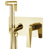 Гигиенический душ Boheme Venturo 387 с внутренним (скрытым) монтажом предназначен для установки в ванной комнате. Конструкция полностью скрыта после монтажа и не нарушает дизайн помещения. Корпус выполнен из латуни с глянцевым золотым покрытием, что обеспечивает долговечность и устойчивость к коррозии. Монтаж скрытый, все соединения расположены в стене.
