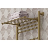 Полка на полотенцесушитель Сунержа длиной 47 см выполнена в современном стиле и станет прекрасным дополнением к любой ванной комнате. Она изготовлена из высококачественной нержавеющей стали и имеет матовую поверхность цвета золотой шёлк.