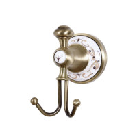 Двойной подвесной крючок Boheme 10806 коллекции Provanse предназначен для ванной комнаты. Изделие выполнено из латуни и керамики, покрытие – глянцевая бронза. Классический стиль, монтаж осуществляется на стену. Габариты: высота 7 см, ширина 10 см, глубина 11,5 см. Страна производства – Турция. Гарантия — 1 год.