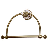 Полотенцедержатель Boheme Provanse 10805 изготовлен из латуни и керамики, покрытие — бронза, форма — округлое кольцо. Монтируется на стену подвесным способом. Ширина изделия 9 см, глубина 16,5 см, высота 53 мм. Глянцевая поверхность обеспечивает износостойкость. Подходит для размещения в ванных комнатах классического стиля.