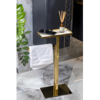 Полотенцедержатель-стойка Boheme 10952-G предназначен для размещения полотенец в ванной. Напольная конструкция позволяет устанавливать изделие без сверления стен. Стойка выполнена из нержавеющей стали с глянцевым золотым покрытием, обеспечивающим защиту от коррозии и долговечность эксплуатации.