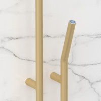 Полотенцесушитель выполнен из нержавеющей стали с матовым покрытием цвета шампань.