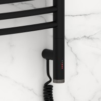 Да, полотенцесушитель оснащен терморегулятором. Блок управления расположен справа.