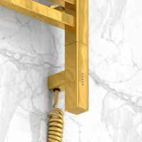 Электрический полотенцесушитель Сунержа Модус 3.0 80х40 (арт. 03-5701-8040) выполнен из нержавеющей стали с глянцевым золотым покрытием, предназначен для настенного вертикального монтажа. Оснащён блоком управления справа, регулируемым терморегулятором, таймером и памятью настроек. Тип исполнения — прямая лесенка, высота 92 см, ширина 40 см, глубина 7 см, диаметр труб — 30 и 20 мм, мощность 300 Вт, жидкостный нагрев. Класс защиты IP54, возможность скрытого подключения, интегрированного в корпус. В комплекте — монтажные элементы, телескопические кронштейны, кабель 1,5 м, шестигранный ключ. Максимальная нагрузка — 5 кг.