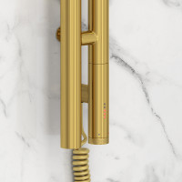 Полотенцесушитель электрический Сунержа Нюанс 3.0, артикул 03-5843-1253, предназначен для настенного вертикального монтажа. Корпус выполнен из нержавеющей стали с глянцевым покрытием цвета золото. Система нагрева — жидкостная, мощность 300 Вт, питание 230 В, таймер, функция памяти и терморегулятор интегрированы в блок управления справа. Устройство оснащено защитой IP54, терморегулятором, регулировкой температуры и функцией памяти, поддерживает скрытое подключение. Комплект включает вешалку, телескопические кронштейны, кабель 1,5 м, монтажные элементы и инструкцию. Максимальная нагрузка 5 кг, класс защиты — I, профиль — круглый.