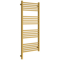 Электрический полотенцесушитель Сунержа Модус 3.1 (артикул 051-5900-1250) выполнен из матовой нержавеющей стали с покрытием цвета состаренной латуни. Конструкция "лесенка" оснащена 20 секциями, высота 132 см, ширина 50 см, глубина 7 см. Монтаж настенный, вертикальное размещение, управление и подключение слева. Блок управления включает терморегулятор, таймер, функцию памяти, есть регулировка температуры и режим сушки. Ток переменный, напряжение – 230 В, мощность – 300 Вт, жидкостный тип нагрева, кабель 1,5 м, класс защиты IP54. Комплект поставки: всё необходимое для скрытого крепления, техническая документация.