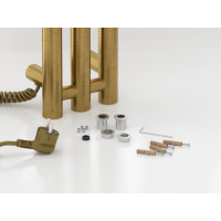 Электрический полотенцесушитель Сунержа Терция 4.0 051-0884-1206 выполнен из нержавеющей стали с состаренным латунным покрытием. Тип монтажа — настенный, вертикальное размещение. Габариты — 120х10х8 см. Кабельный нагрев, мощность 109 Вт, подключение слева, длина кабеля 1,5 м. Класс защиты — IP54, I класс, таймер, функция памяти, регулировка температуры. Скрытое подключение предусмотрено в комплекте для аккуратного монтажа. Максимальная нагрузка — 5 кг. В комплект входят крепежи, шайбы, шестигранный ключ, инструкция.