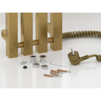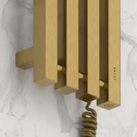 Электрический полотенцесушитель Сунержа Сатерленд 4.0, размер 120х15 см, выполнен из нержавеющей стали с матовым покрытием в цвете состаренная латунь. Монтаж настенный, вертикальный. Блок управления и подключение расположены справа. Предусмотрены функции таймера, памяти и регулировки температуры. В комплекте: всё для монтажа, шайбы скрытого крепления, резиновая заглушка, шестигранный ключ, саморезы, дюбели, инструкция, технический паспорт. Степень защиты — IP54, класс защиты — I, максимальная нагрузка 5 кг, мощность 143 Вт, кабель 1,5 м. Время разогрева — не более 30 минут.