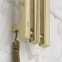 Электрический полотенцесушитель Сунержа Вердикт 4.0 (артикул 020-0852-1210) предназначен для вертикальной настенной установки. Модель выполнена из нержавеющей стали с глянцевым покрытием цвета шампань. Габариты: высота — 120 см, ширина — 10 см, глубина — 8 см. Питание — переменный ток, напряжение 230 В, мощность нагрева 109 Вт, левое расположение блока управления и кабеля, скрытое подключение входит в комплект. Исполнение — квадратный профиль, современный стиль. Класс защиты IP54. Оснащён таймером, функцией памяти, регулировкой температуры, кабельный тип нагрева, максимальная нагрузка до 5 кг. Время нагрева — не более 30 минут. В комплекте: всё необходимое для монтажа, шайбы для скрытого крепления, резиновая заглушка, шестигранный ключ, саморезы, дюбели, инструкция.