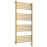 Полотенцесушитель Сунержа Богема 3.1 03-6005-1260 предназначен для настенного монтажа в ванных комнатах. Электрическая модель размером 120х60 см изготовлена из нержавеющей стали с глянцевым золотым покрытием. Конструкция "лесенка" с 20 секциями обеспечивает эффективную сушку полотенец и белья. Компактный корпус глубиной 7 см выполнен с круглыми профилями, диаметр вертикальных труб — 32 мм, горизонтальных — 18 мм. Мощность нагрева — 300 Вт, жидкостный тип, таймер, терморегулятор и функция памяти встроены. Класс защиты IP54, I класс электрозащиты, напряжение 230 В. Управление и кабель питания расположены справа, длина кабеля — 1.5 м. Система скрытого подключения входит в комплект, обеспечивая аккуратный внешний вид. Время разогрева — до 30 минут. Максимальная нагрузка — 5 кг.