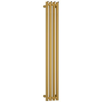 Электрический полотенцесушитель Сунержа Кантата 4.0 артикул 03-0886-1259 выполнен из нержавеющей стали с глянцевым золотым покрытием. Монтаж осуществляется вертикально на стену. Управление и блок подключения расположены слева, реализовано скрытое подключение. Мощность 143 Вт, работает от сети 230 В с классом защиты IP54. Круглый профиль, ширина 15 см, высота 120 см, глубина 8 см. В комплекте таймер, функция памяти, регулировка температуры, все необходимые элементы для установки, включая крепёж и инструкцию.